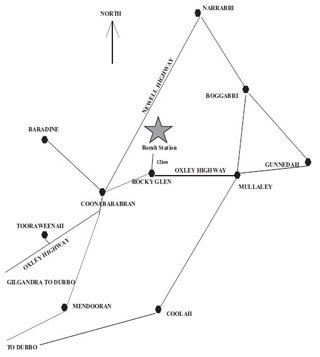 34 km East of Coonabarabran, 72 km West of Gunnedah on the Oxley Hwy.