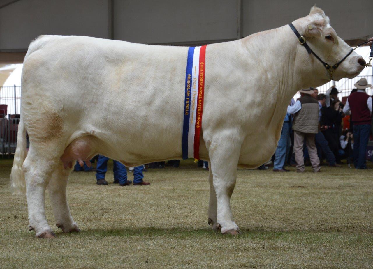DSK DK Wendy F30E sired by JCR Sir Duke. Dam is DSK RE Wendy C31E. Grand Champion Charolais Female at Sydney Royal Charolais Feature Show 2013.